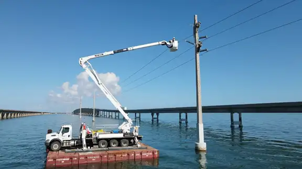 The 138-kV power line could not be switched out and had to remain energized so there was no interruption in power delivery to thousands of Keys residents. Using highly specialized barehand live-line crews and a barge for water-sited poles, United Utility replaced 1,473 standard old polymer insulators on 491 structures with new insulators offering longer-term protection and resilience against salt air and water.